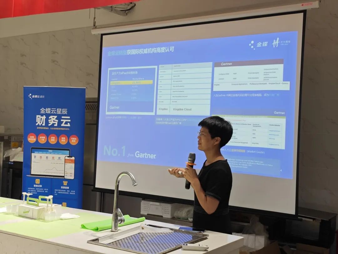 2點半,金辰軟件副總經(jīng)理倪小紅女士做了開場分享。簡單介紹了舉辦此次活動的初衷,以及金蝶云產(chǎn)品未來的發(fā)展。